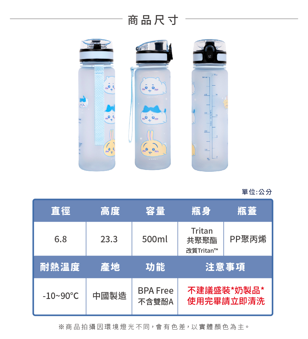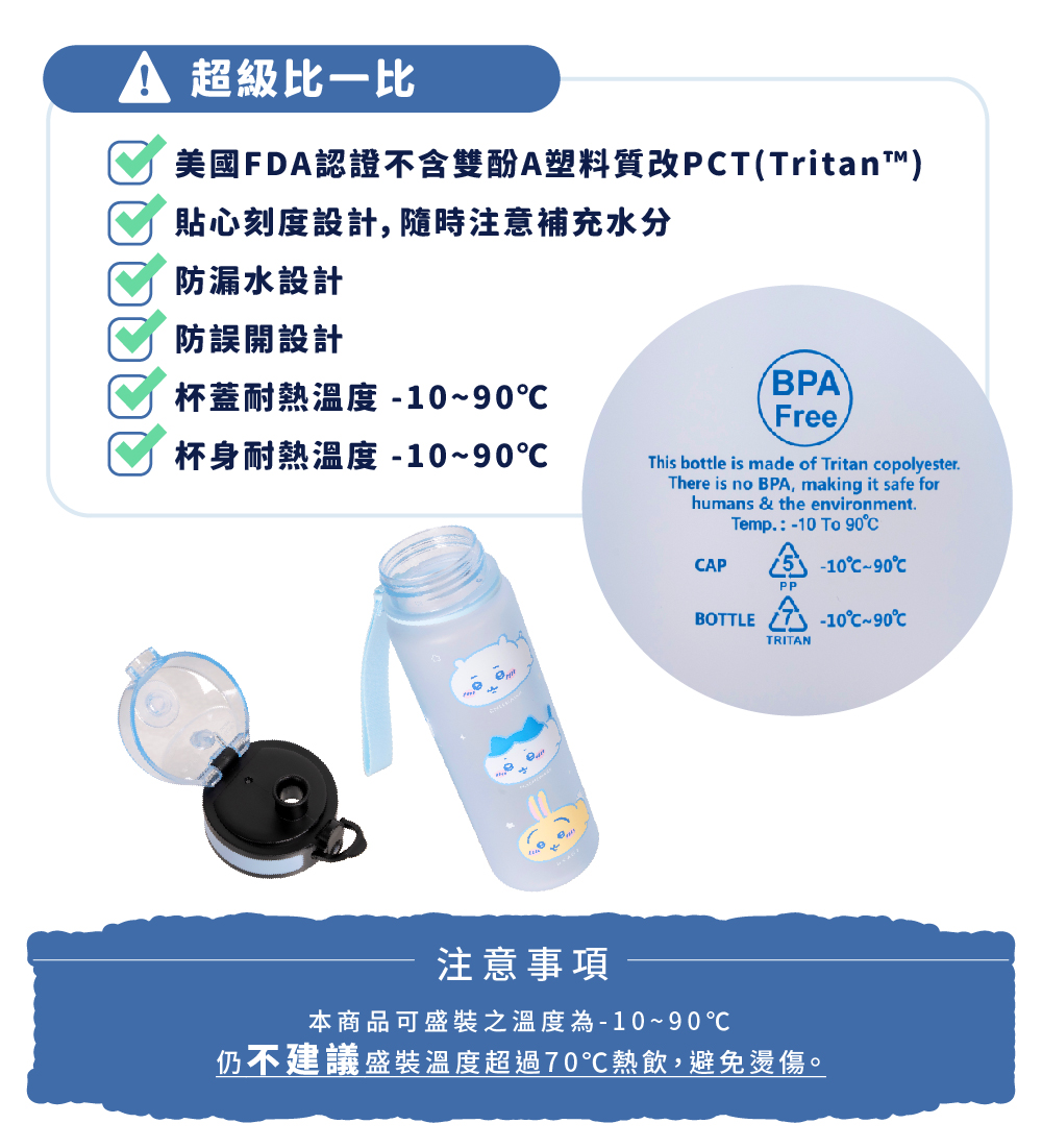 -材質: 瓶身-Tritan 共聚聚酯 , 瓶蓋-PP 聚丙烯